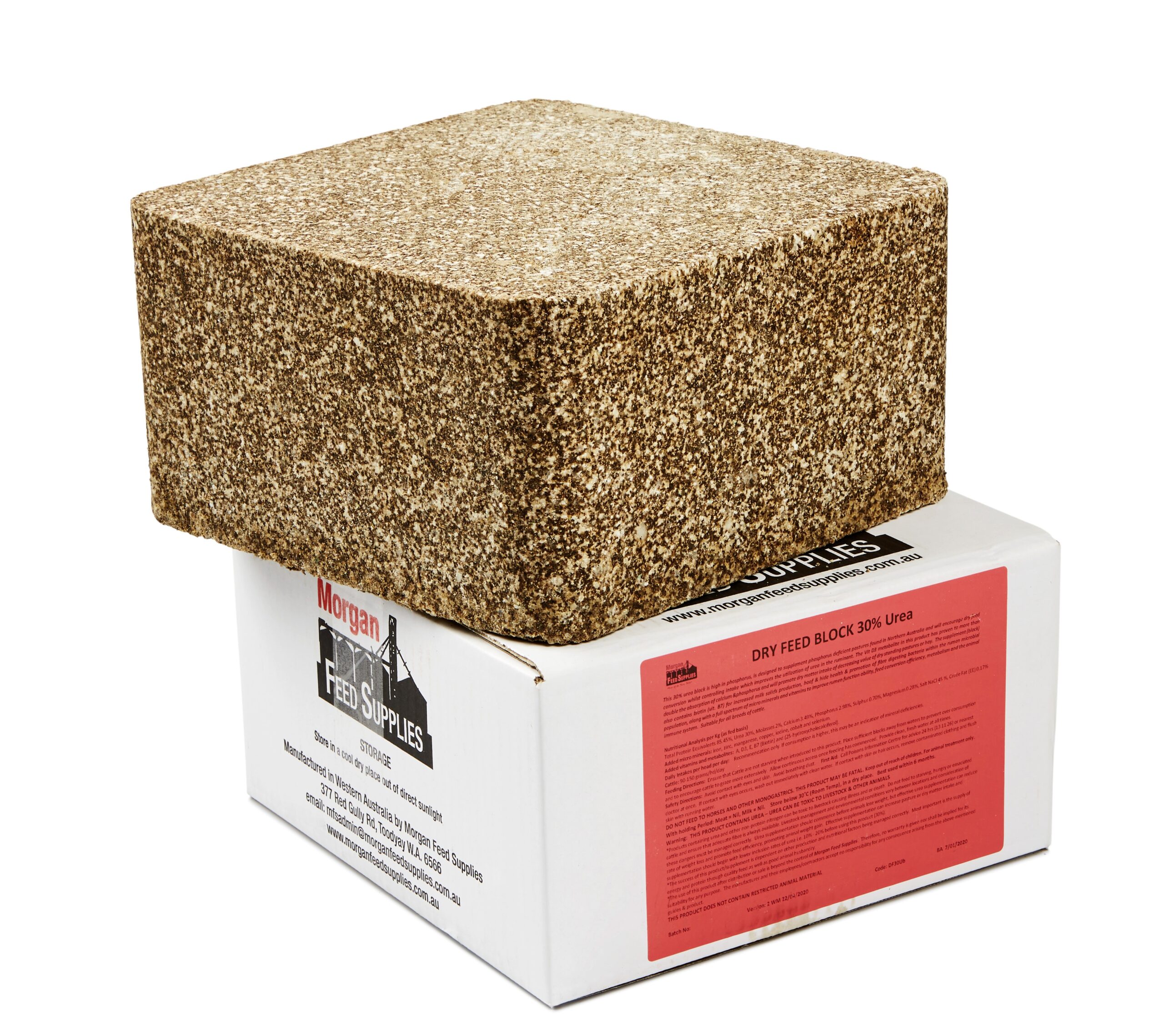 The MFS Dry Feed Block 30% Urea is a high Phosphorus block designed to supplement cattle grazing Phosphorus deficient pastures found in Northern Australia. It will encourage dry feed conversion whilst controlling intake which improves the utilization of urea in the rumen. Suitable for all breeds of cattle.